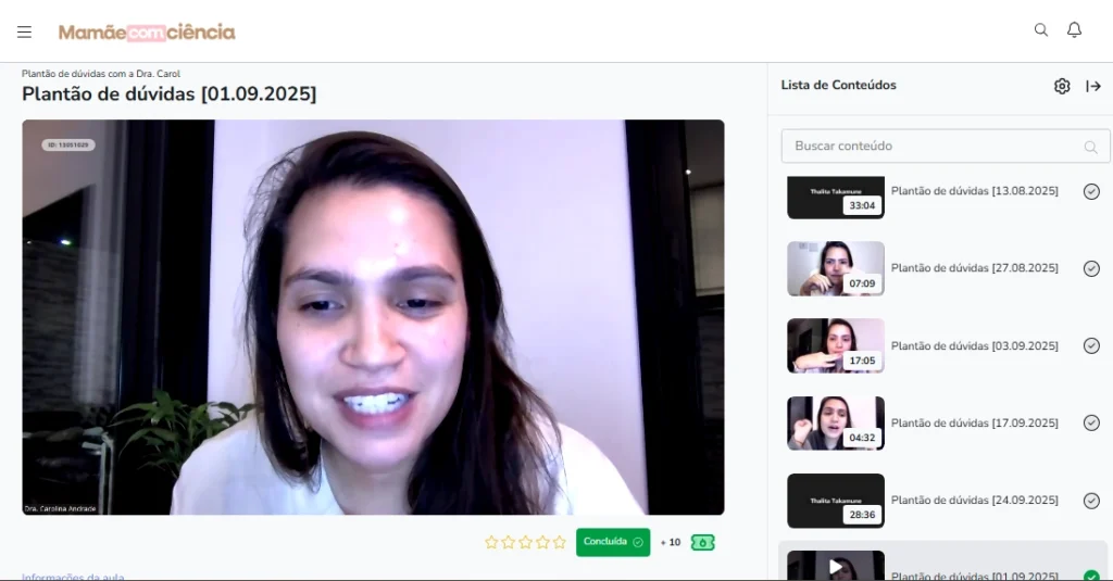 Toda semana, você pode enviar suas dúvidas com calma e no seu tempo. Eu leio cada dúvida com carinho e gravo uma resposta em VÍDEO, explicando exatamente o que fazer de forma clara, prática e segura. Mesmo que você não pergunte nada naquela semana, pode assistir às respostas das outras alunas, porque muitas vezes a dúvida delas é a mesma que você teria. Todas as gravações ficam salvas na plataforma para você assistir quando quiser, quantas vezes precisar.